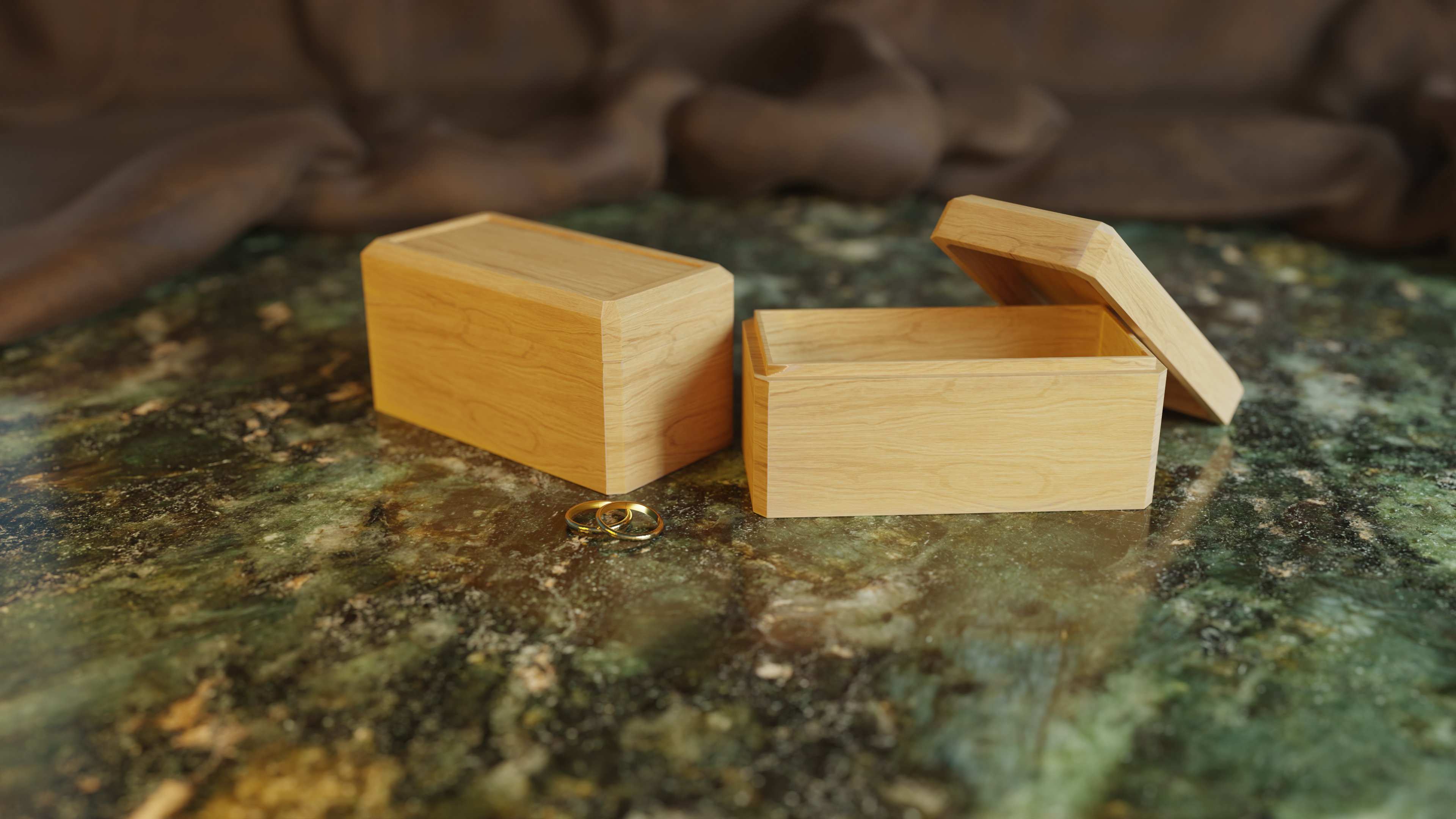 The wedding bands renders were made to visualize the wooden boxes before making the real thing, and lastly the shed is a work in progress visualization of a play house.
